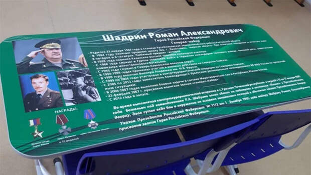 Именно там обучались сыновья Владимира Ильича — Евгений и Сергей, которые пошли по стопам своего отца и оба стали летчиками. "Парта Героя" будет находиться в лучшем по успеваемости классе. В течение года право сидеть за ней будет предоставляться лучшим ученикам", — пояснили в Департаменте физической культуры, спорта и дополнительного образования Тюменской области.Вместе с тем парта с изображением военного уже есть в одной из школ Тобольского района. На парту нанесли фото советского и российского офицера, участника боевых действий в Чеченской республике Романа Шадрина.
