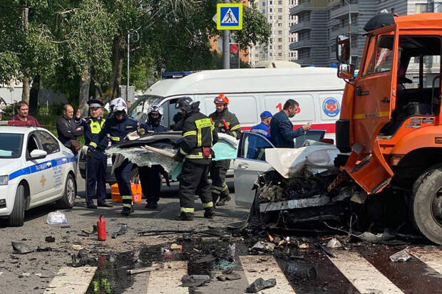 Жительница Москвы Влада, ставшая очевидцем ДТП на юго-западе столицы, рассказала "Газете.Ru", что в аварии пострадали водители "КамАЗа" и Mercedes. По ее словам, водителя легкового автомобиля, находящегося без сознания, долго не могли вытащить из машины.