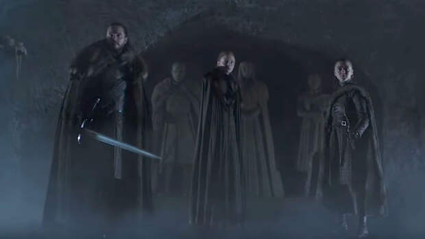 В сети вышел тизер заключительного сезона сериала "Игра престолов", в котором герои культовой саги -- Джон Сноу, Арья и Санса Старк встречаются в крипте Винтерфелла. Кроме того, судя по тизеру, первая серия восьмого сезона выйдет 14 апреля.