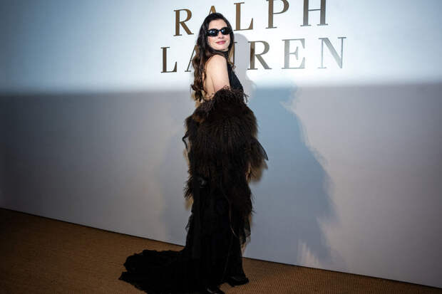 43-летняя Энн Хэтэуэй посетила показ дизайнера Ральфа Лорена, который прошел в Нью-Йорке. Актриса позировала перед фотографами в черном полупрозрачном макси-платье без бюстгальтера. Образ артистки дополнили меховая накидка, кожаные туфли, серьги и золотые кольца.