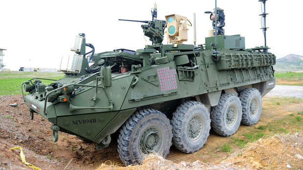 На кадрах российский беспилотник "Ланцет" поражает машину. На ролике видно, что украинские военные спрятали Stryker под тенью деревьев и прикрыли ветками.