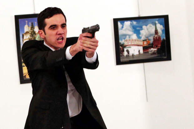 Во время выступления российского посла Алтынташ, стоявший за его спиной, выхватил пистолет и произвел серию выстрелов, выкрикивая лозунги "Не забывайте Алеппо!" и "Не забывайте Сирию!". Когда раненый посол упал, нападавший выстрелил в него еще несколько раз, после чего начал беспорядочную стрельбу. Экс-полицейский был ликвидирован правоохранителями.