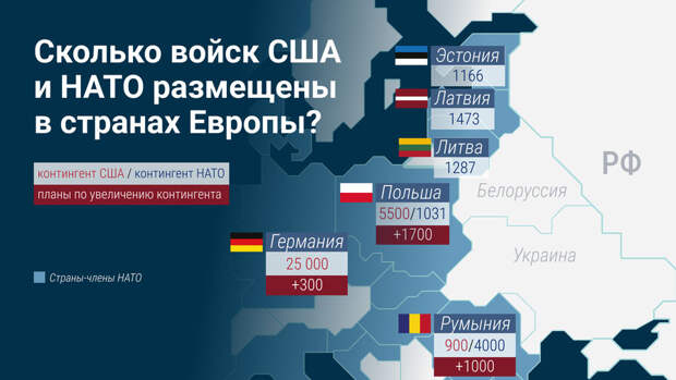 Накануне сообщалось, что первые военно-транспортные самолеты США начали переброску дополнительных американских войск в Европу. По имеющейся информации, контингент из двух тысяч военных вылетел из воинской части в Северной Каролине на самолетах C-17 Globemaster. Уточняется, что основная часть этих американских военных будет дислоцирована и размещена в Польше, остальные будут временно базироваться в Германии.