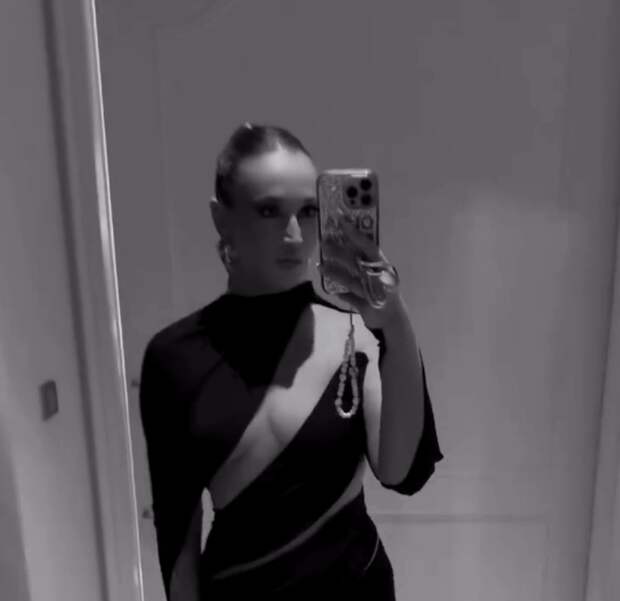 Ольга Бузова примерила наряд от бренда Mugler. Певица стояла перед зеркалом в черном облегающем мини-платье с вырезами на груди, которое дополнила ботфортами на каблуках и массивными серьгами.