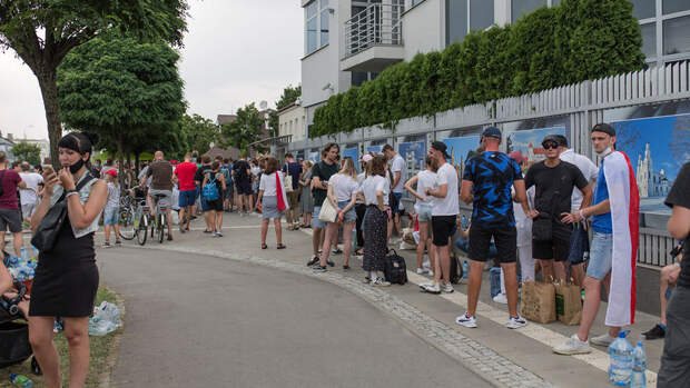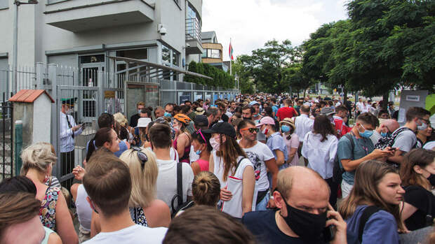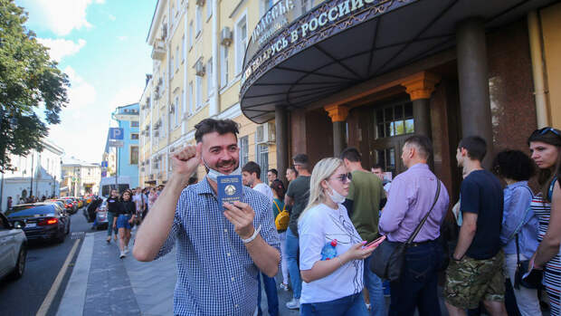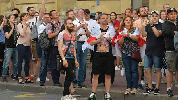 Демонстранты включили на звукоусиливающей аппаратуре белорусскую музыку. Местные жители принесли к посольству Белоруссии еду и воду.