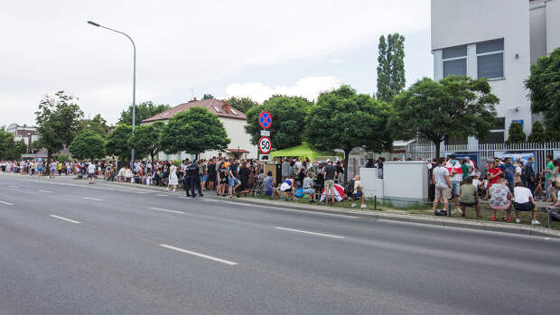Отмечается, что утром в понедельник, 10 августа, у здания дипмиссии на улице Вертничей белорусы уже поставили две палатки, в которых находятся несколько человек.