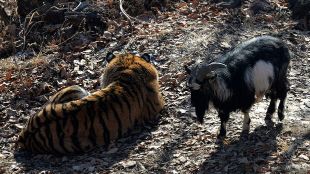После этого, как рассказали сотрудники сафари-парка, между животными и зародилась дружба, передавало издание "КП-Владивосток". По их словам, каждый раз, когда тигр прогуливался по вольеру, козел следовал за ним.