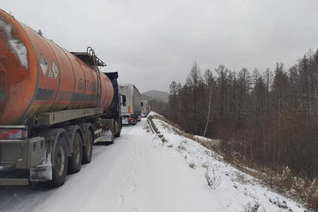"Из-за заносов на магистралях "Байкал" и "Амур" образовались многокилометровые пробки из грузовиков, движение затруднено также в Бурятии и Иркутской области. По направлению к Чите движение также осложнено", - сообщает канал.
