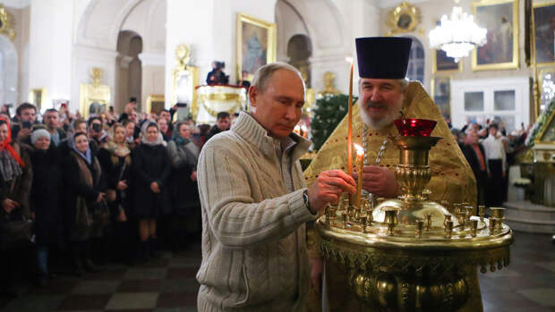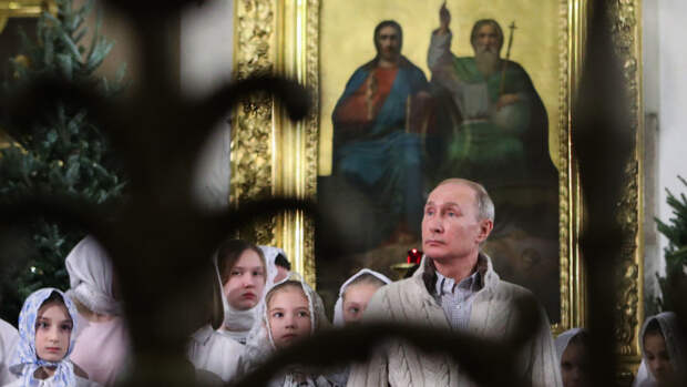 Как известно, российский лидер приехал в храм в полночь, чтобы поучаствовать в рождественской службе.