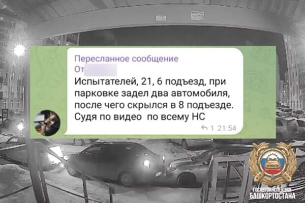 "Инцидент произошел на днях в уфимском Затоне на ул. Испытателей. Неравнодушный гражданин сообщил к нам в чат-бот, что водитель при парковке задел две машины, после чего скрылся в одном из подъездов дома", - отмечается в сообщении.