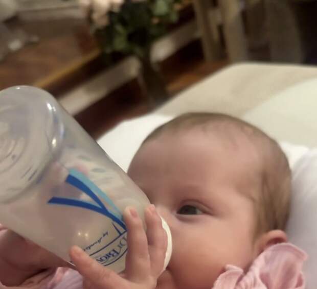 Ида Галич показала, как ее дочь научилась держать бутылочку.