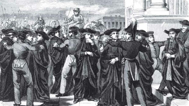 "Внезапная смерть Павла I была для иезуитов не только неожиданностью, но и нравственным поражением, - подчеркивалось в вышедшей в 1870 году книге священника Михаила Морошкина "Иезуиты в России, с царствования Екатерины II и до нашего времени". - Иезуиты боятся Палена (граф Петр Пален – организатор заговора против Павла I. – "Газета.Ru"). Удаление от дела правления Палена принято было иезуитами за хорошее предзнаменование. Самостоятельное правление Александра I если не возбуждало в иезуитах больших надежд, то и не представляло больших опасений для их ордена. Лица, стоявшие близко к Александру I, были или прямые защитники и покровители иезуитов, или косвенно содействовали их видам и делам".