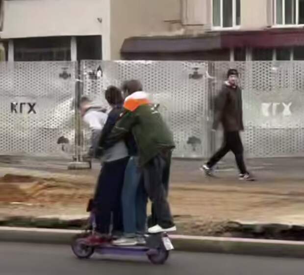 Местные жители запечатлели инцидент на видео. На кадрах заметно, как школьники втроем едут на одном электросамокате по проезжей части, при этом прохожие оглядываются на нарушителей.