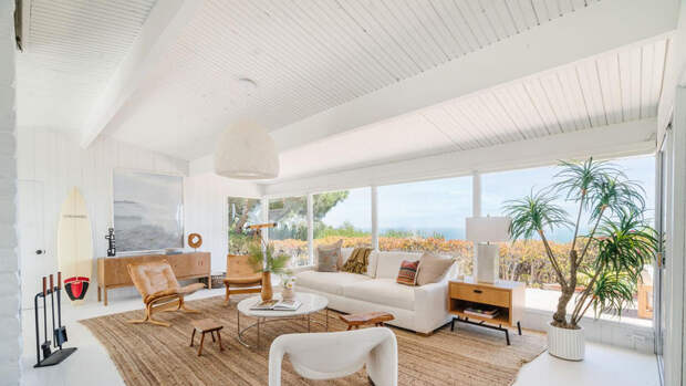 Новому владельцу достались отремонтированная кухня, кирпичный внутренний дворик с местом для отдыха, гостиная с панорамными окнами и камином, ванная комната с белой плиткой, эвкалипты и юкки на территории и многое другое.