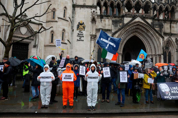 Отмечается, что активисты собрались у здания суда с плакатами "Освободите Ассанжа. Журналистика — не преступление", "Освободите Ассанжа, нет экстрадиции", "Не экстрадируйте Ассанжа".