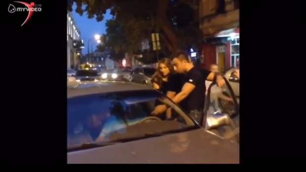 Молодые люди заблокировали проезд автомобилю и требовали то ли снять, то ли отдать им георгиевскую ленточку.