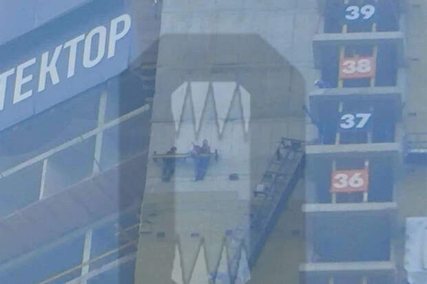 "Двое мужчин, которые работали на высоте, сейчас находятся на уровне 37 этажа и держатся за балку, стоя на выступе", - говорится в публикации издания.