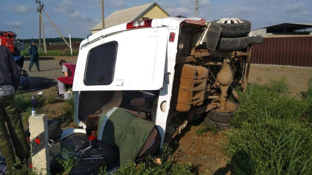 Согласно кадру с места, после столкновения маршрутка перевернулась, когда оказалась на обочине.