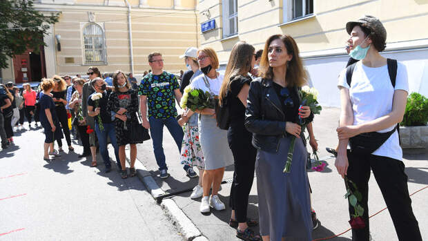 После отпевания церемония продолжилась открытой частью во дворе факультета у памятника Ломоносову.