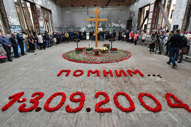Затем цветы и венки к поклонному кресту, установленному в спортзале, возложили глава Северной Осетии Сергей Меняйло, председатель местного парламента Таймураз Тускаев, председатель правительства республики Борис Джанаев, представители Совета Федерации, Госдумы, члены правительства и депутаты парламента Северной Осетии, делегации органов государственной власти, муниципальных образований Владикавказа и районов республики, представители общественных и религиозных организаций, бывшие заложники и их родственники.