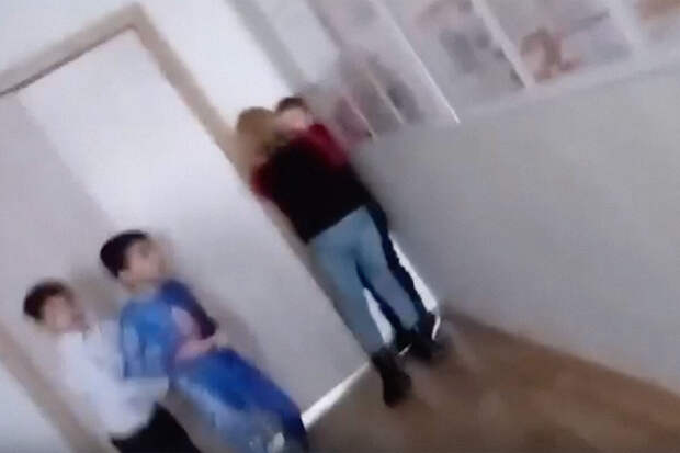 На кадрах опубликованного видео женщина зажимает мальчика в угол и толкает его. Автор сообщения утверждает, что инцидент произошел в школе №48.