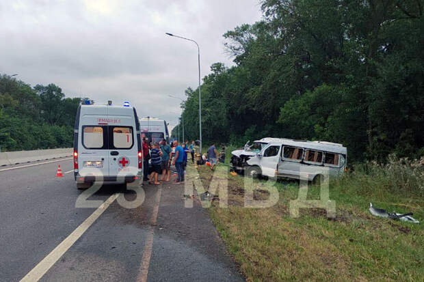 "На 36-м километре автодороги "Краснодар – Ейск" 55-летний водитель пассажирского микроавтобуса Mercedes-Benz, сообщением "Симферополь-Латвия" превысил скорость, съехал с дороги и врезался в столб", - говорится в сообщении.
