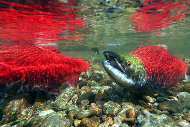 Дикий лосось обычно ждет дождя, чтобы начать путешествие вверх по ручьям и рекам — это показатель того, что уровень воды поднимется и облегчает проход к его родным ручьям.