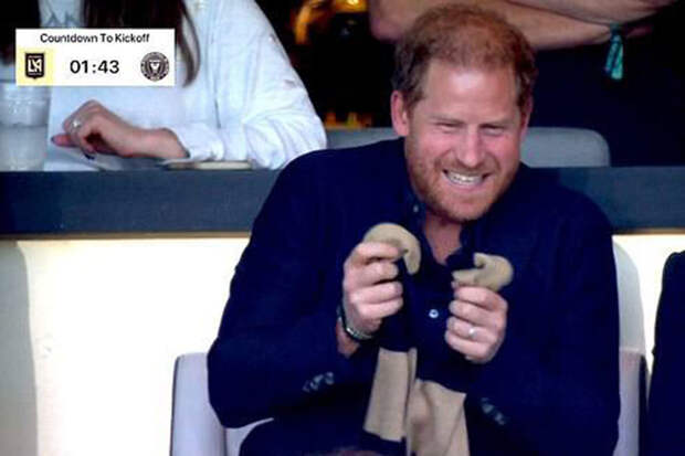 Кадры с "счастливым" принцем Гарри попали в трансляцию. Младший сын короля Великобритании был одет в классический синий костюм и рубашку в тон. Герцог Сассекский внимательно следил за игрой Лионеля Месси, оживленно жестикулировал и радовался победе команды "Интер Майами", которая обыграла "Лос-Анджелес" со счетом 3:1.