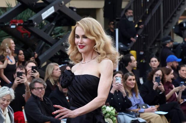 Николь Кидман открыла шоу Vogue World, которое прошло 26 октября в Лос-Анджелесе. Голливудская актриса вышла в свет в сшитом на заказ черном атласном платье от Chanel с разрезом, украшенном камелиями.