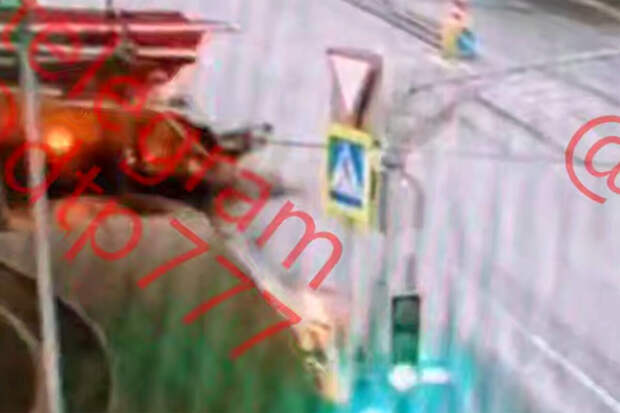 Уличная камера запечатлела инцидент. На кадрах видно, как большегруз поворачивает на проезжей части, в этот момент в него врезается грузовик.
