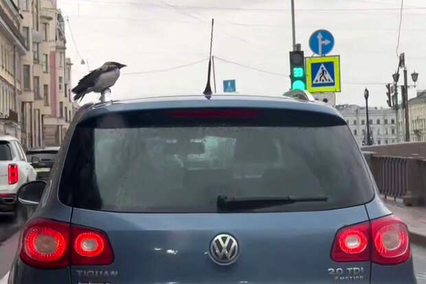 В Санкт-Петербурге ворона сидела на крыше движущегося автомобиля Volkswagen. Об этом сообщает Telegram-канал "Питер. Афиша".