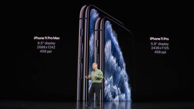 Третьим телефоном стала увеличенная версия iPhone 11 Pro с приставкой Max — с экраном диагональю 6,5 дюйма и немалой ценой в $1099 за 64 Гб. Прайс на модификацию с 512 Гб так и вовсе стартует с отметки в $1449 — это примерно на $150 дороже базового MacBook Pro.
