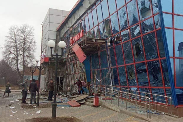 В результате обстрела торговый центр получил сильные повреждения.