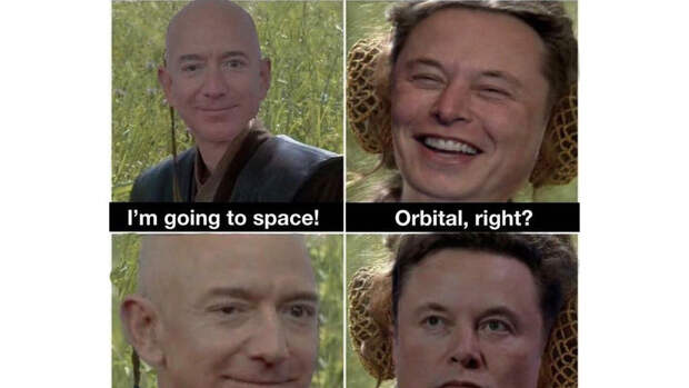 Илону Маску понравился мем про Джеффа Безоса и суборбитальный полет в космос, который разместил в Twitter один из пользователь соцсетей.