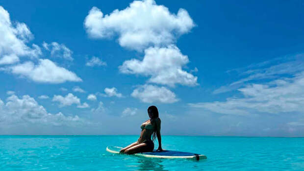 24-летняя Кайли Дженнер опубликовала в личном блоге кадр с отдыха. На снимке звезда реалити-шоу и бизнесвумен предстала сидящей на доске для серфинга посреди океана.