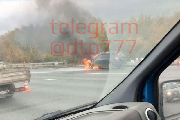 Огонь распространился на днище машины и охватил левое переднее колесо. Пламя также видно в районе лобового стекла японского автомобиля.В районе 7-го километра МКАД проходит рядом с районами Вешняки и Косино.
