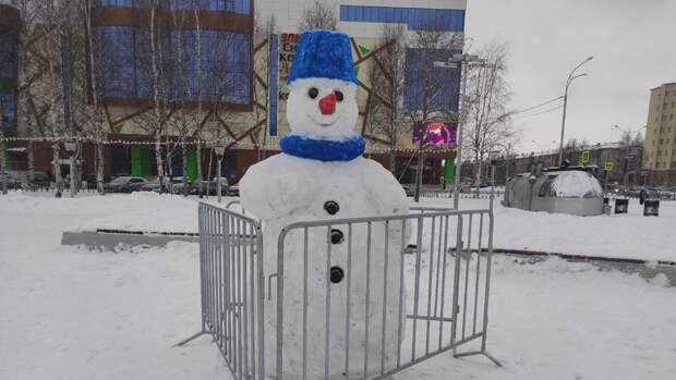 В Нижневартовске заметили крашеного снеговика, которого огородили заборами. Об этом сообщает издание "Подъем".