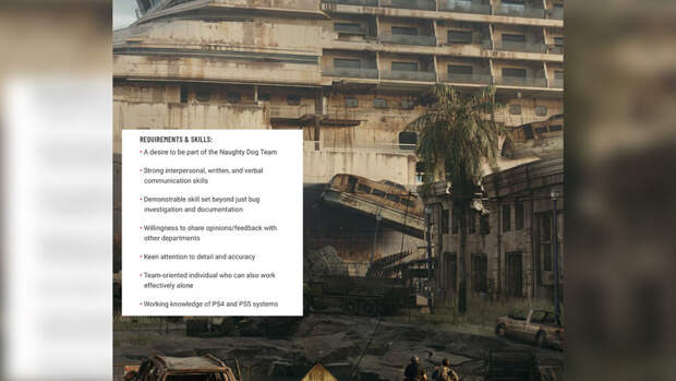 К своему сообщению инсайдер прикрепил скриншот вакансии, где указаны требования к соискателям. Один из пунктов гласит, что тестировщик должен иметь "знания по работе с PlayStation 5 и PlayStation 4". "Потенциально кроссплатформенный мультиплеер?", – задался вопросом автор профиля The Last of Us Multiplayer Info. За стуки пост инсайдера набрал 15,4 тыс. просмотров, а также более 200 лайков. Про мультиплеерную игру во вселенной The Last of Us известно немногое. Студия Naughty Dog подтвердила существование проекта только в июне 2022 года. Тогда же разработчики сообщили, что это будет самый амбициозный проект в истории коллектива. Ранее "Газета.Ru" писала о системных требованиях The Last of Us Part I для ПК.