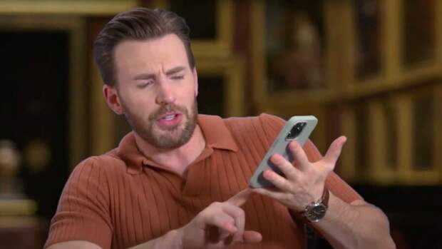 Актер посетовал, что ему приходится поддерживать нижнюю часть смартфона мизинцем, чтобы как-то упростить использование.Интервьюер даже пошутил, что "Капитан Америка" не может поднять свой телефон.