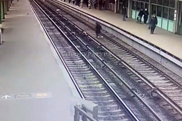 На кадрах опубликованного ведомством видео нарушитель спускается с платформы на станции метро "Выхино" на пути и следует к платформе напротив.