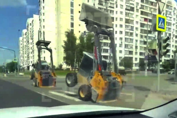 Москвичка запечатлела инцидент на видео. На кадрах видно, как два мини-погрузчика едут на задних колесах.