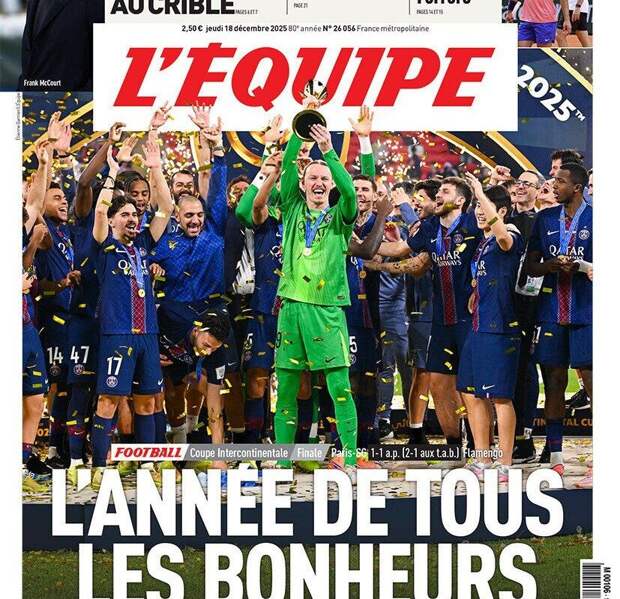 Российский вратарь французского "ПСЖ" Матвей Сафонов попал на обложку французского издания L'Equipeпосле победы парижан в финале Межконтинентального кубка над бразильским "Фламенго".
