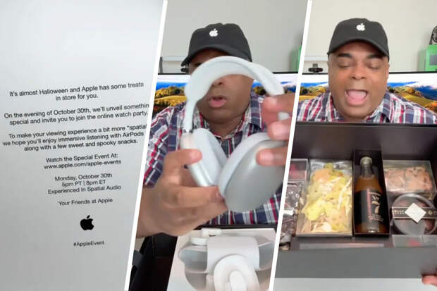 Он показал открытку с приглашением на онлайн-презентацию Apple и другие подарки, включая закуски, напиток и наушники AirPods Max.AirPods Max - это флагманские полноразмерные наушники Apple, вышедшие в 2020 году по цене в $550 (около 51,2 тыс. руб.).