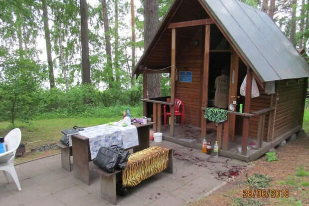 В 40 метрах от домика, у деревянных туалетных кабинок, были обнаружены капли крови и примятая трава. Больше ~никаких следов убийца не оставил. Не удалось найти даже орудие преступления.~ Взять след не смогла и служебная собака.