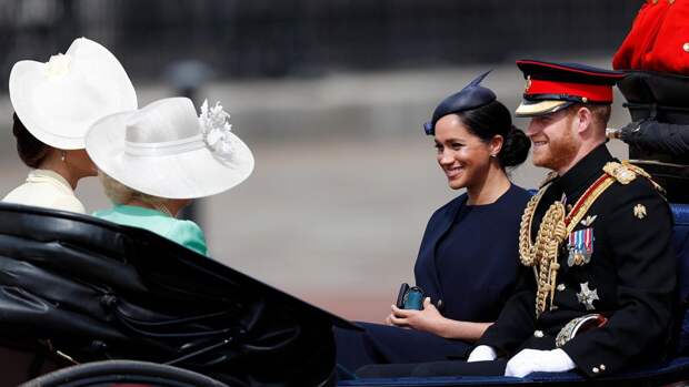 Как сообщает Daily Mail, в экипаже она ехала с Кейт Миддлтон и Камиллой Паркер-Боулз, где вступила с ними в оживленную беседу. Параллельно она успевала помахивать толпе, собравшейся, чтобы полюбоваться парадом и посмотреть, как выглядит Меган Маркл через месяц после родов.