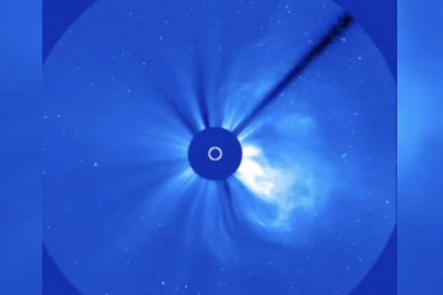 Уточняется, что космические коронографы зафиксировали выброс плазмы примерно с часа ночи до 9-10 утра по московскому времени.
