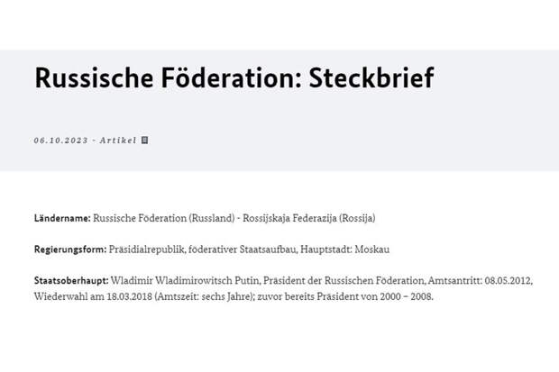 При этом еще в феврале в ответе на запрос РИА Новости пресс-служба МИД ФРГ использовала формулу "президент Путин", а на сайте МИД ФРГ Путин также обозначен как президент и глава государства (на скриншоте).