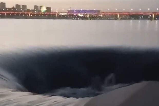 Градоначальник заявил, что "ничего сверхъестественного там" не было. Ролику уже четыре дня, сейчас водоворота уже нет, а опасности он не представлял.