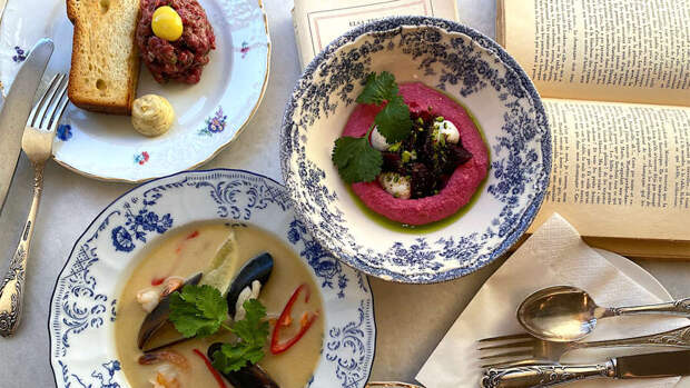 "Почти каждый день, а иногда и несколько раз в день, гости спрашивают нас: "Где купить такой "сервиз"?" А мы все рассказываем: эта тарелочка винтаж, куплена у европейского байера, это чешский бренд Thun, новодел, это тарелка с штампом Rosenthal была найдена на барахолке, и на всю "Публику" она одна. Вилки и ножки регулярно пополняем, начищаем до блеска и отправляем в работу, по одному молочнику ловим в соцсетях, что-то нам приносят наши друзья", — говорит Юлия Селякова.
