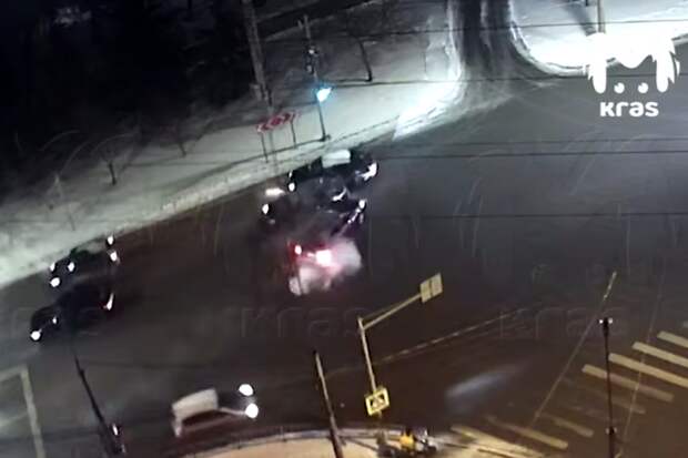 На кадрах с места видно, как авто одного из участников резко врезалось в автомобиль, который из-за этого спустя пару секунд столкнулся с еще одним участником движения.